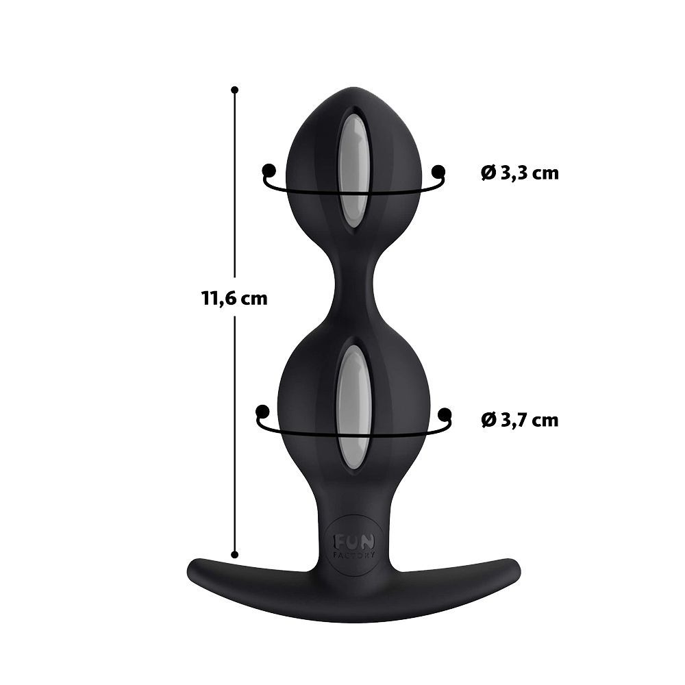B BALLS DUO - ¡Un plug anal que reacciona a tus movimientos! Dos bolas de tamaño gradual se introducen apasionadamente en el ano, tramo a tramo, como bolas anales. Las pequeñas pesas del interior del B BALLS DUO crean sensaciones reactivas en función del movimiento del cuerpo, permitiendo intensidades que van de suaves a potentes. ¡No hay otro juguete igual!