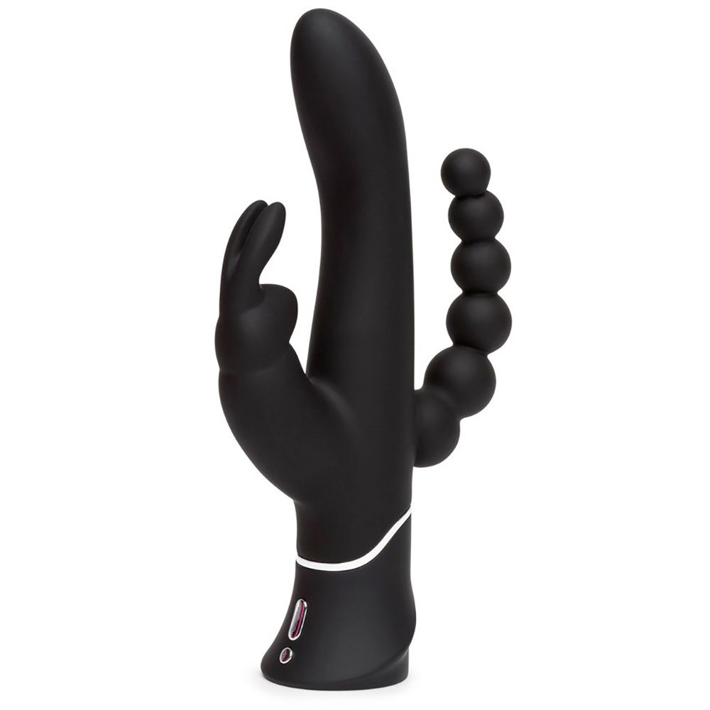 El miembro curvado alcanza tu punto G mientras que las orejas del conejito extra gruesas estimulan tu clítoris y las perlas anales anguladas permiten juegos deliciosos de doble penetración.