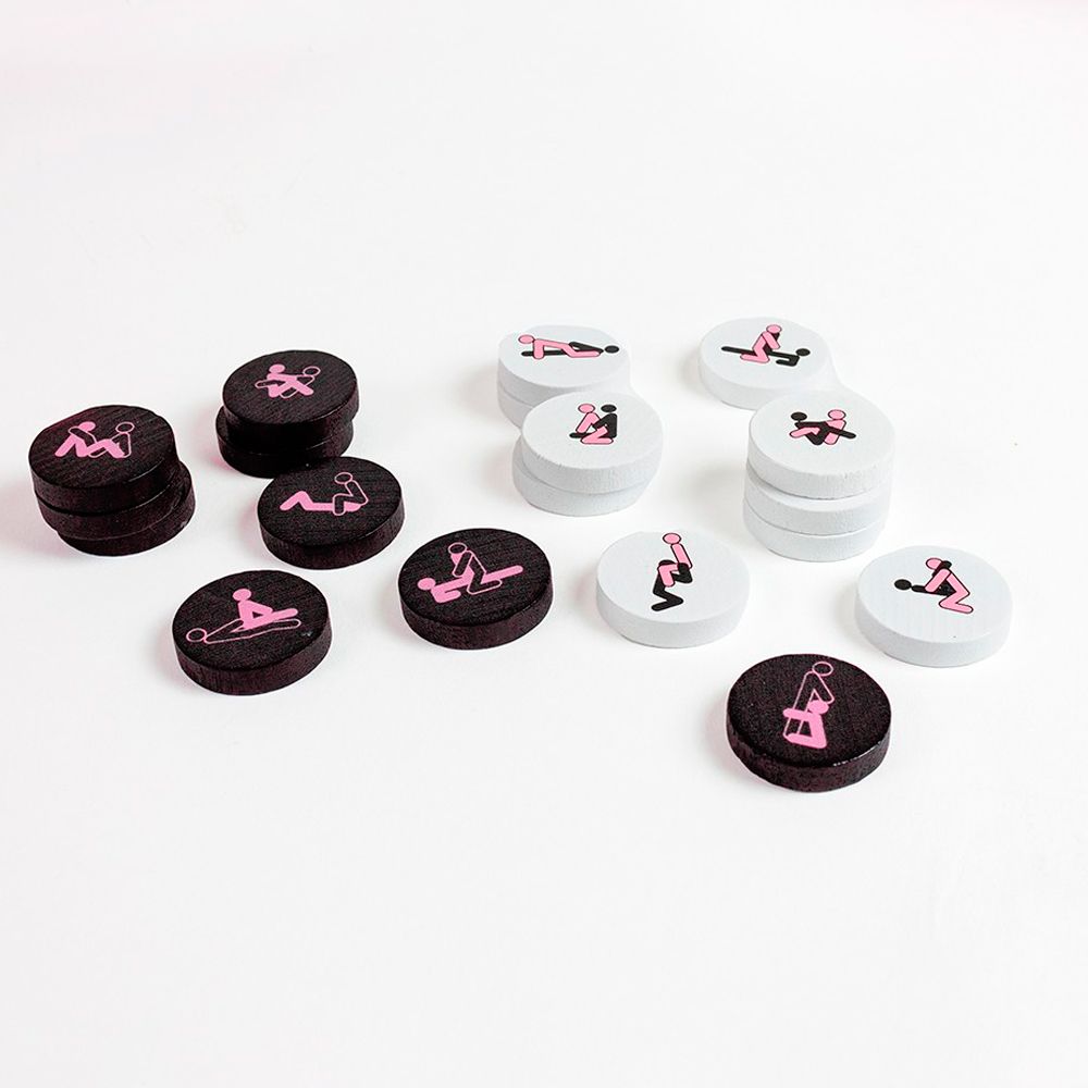 42 fichas (21 fichas de color blanco y 21 fichas de color negro) cada una con una posición de Kamasutra diferente.