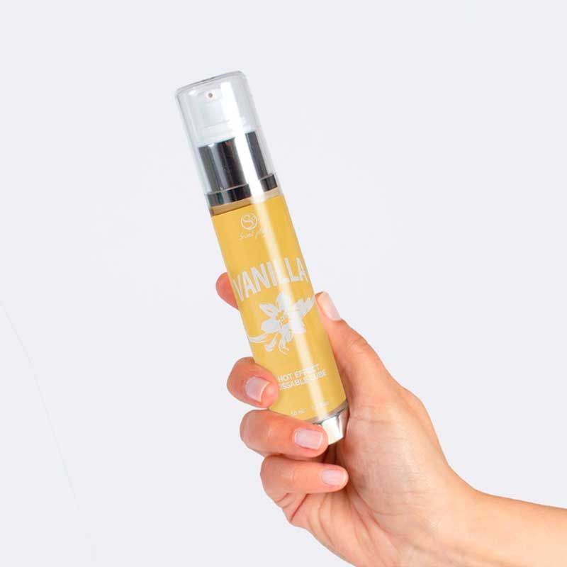 Envase con sistema "Airless" Fácil aplicación Capacidad: 50 ml Aroma: Vainilla Base glicerina Puede usarse como aceite de masaje y como lubricante Hecho en España