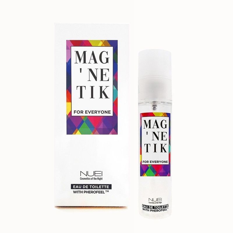 “MAG’NETIK for everyone es la única colonia no binaria del mercado que incluye PHEROFEELTM for him y PHEROFEELTM for her, exclusiva de NUEI”. Un aroma, para ellas, para ellos y para todos los demás. “Larga persistencia: su concentración de ingredientes vegetales combinados con PHEROFEELTM aumentan la duración de la colonia en la piel.”