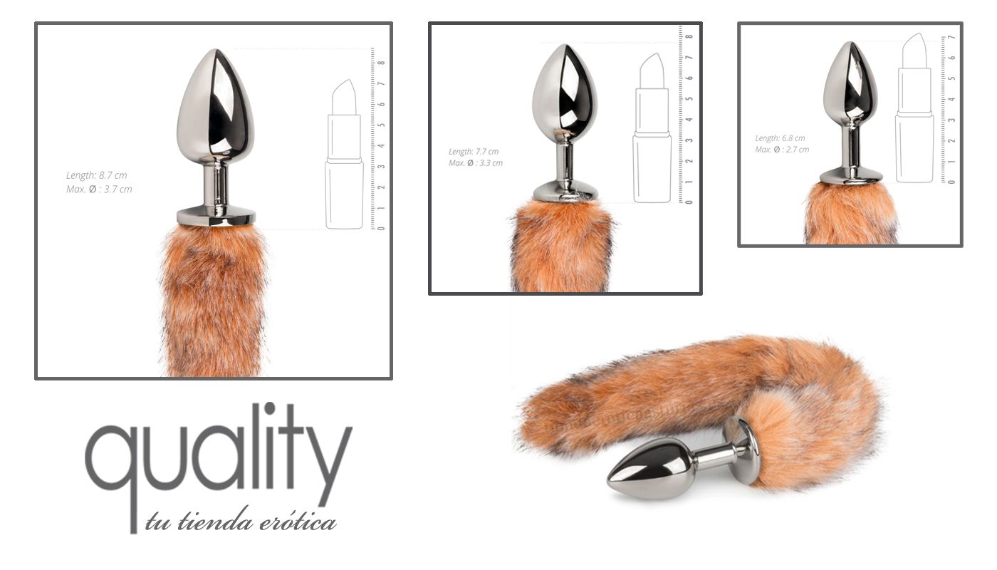 • 7,2 cm de los cuales solo 6 cm son insertables. Diámetro de 2,7 cm. (Cola Plateada)