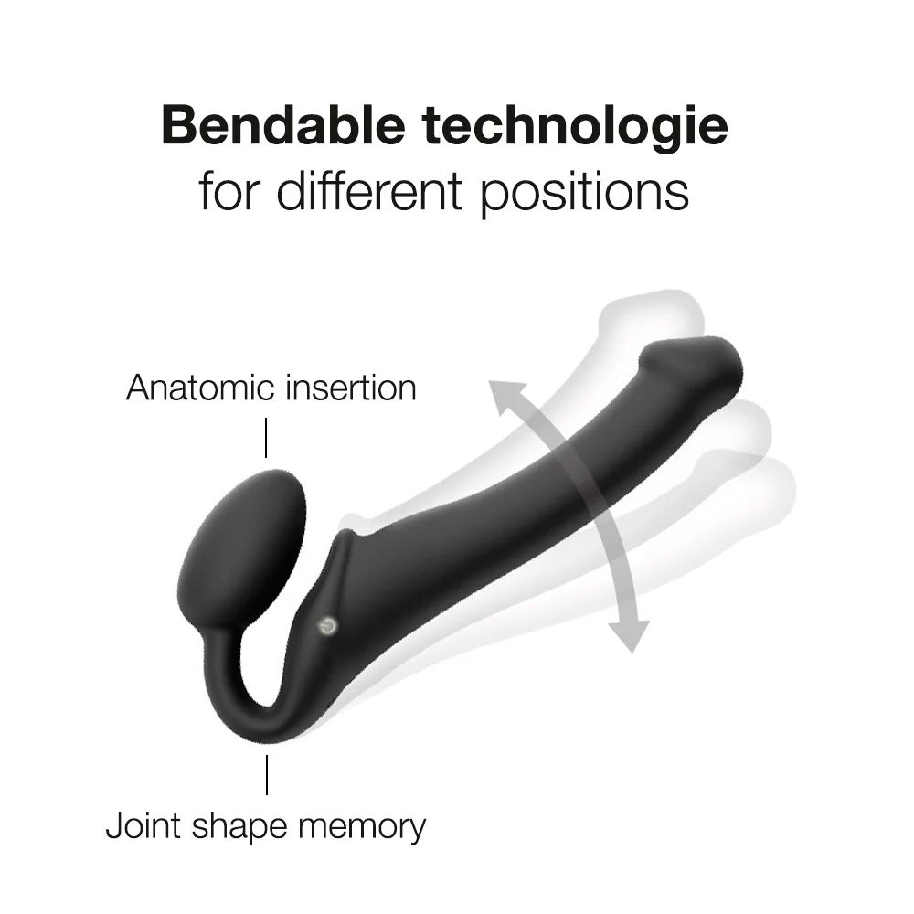 Los 3 potentes motores independientes, el mando a distancia intuitivo, el material de silicona líquida para un tacto ultrasuave y flexible, combinados con la elegancia de sus líneas sobrias, hacen del nuevo Vibrating Bendable Strap-on el accesorio indispensable para vivir experiencias inigualables.