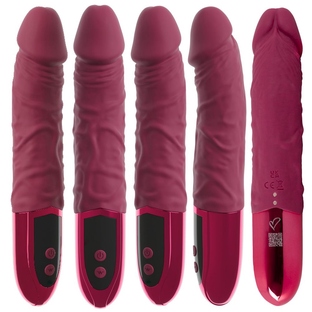 Vibrador con aspecto de pene naturalista y sensual color rojo vino en un elegante acabado de seda mate y brillante. Con glande moldeado y marcadas venas para una estimulación intensa. Vibra con especial intensidad en la cabeza para mimos específicos. El vibrador de silicona se adapta cómodamente a la mano y se desliza como si estuviera solo gracias a su textura suave y sedosa, adaptándose perfectamente al cuerpo y acompañando todos los movimientos.