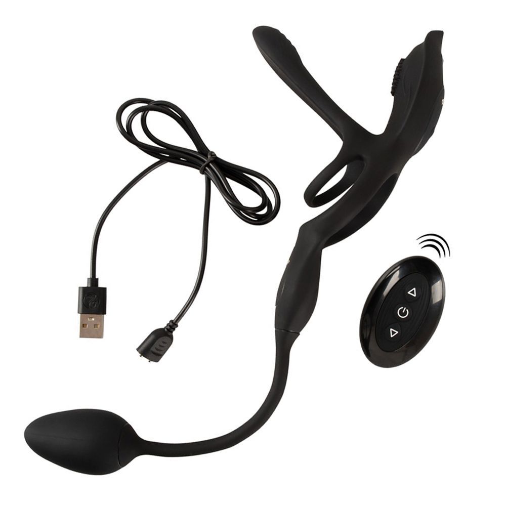 El RC Vibrador Multifunción para Parejas sostiene el pene y mima a la pareja durante el acto sexual con profundas vibraciones. Nada menos que 5 juguetes se combinan en este multitalento: Anillo para pene y testículos, vibrador para parejas, vibrador clitoriano y plug vibroanal.