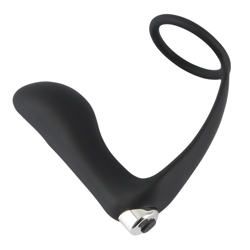 Vibroplug sedoso con puente perineal integrado y anillo de pene. La bala vibradora extraíble es recargable y mima la próstata con 10 potentes modos de vibración. Cable USB incluido.